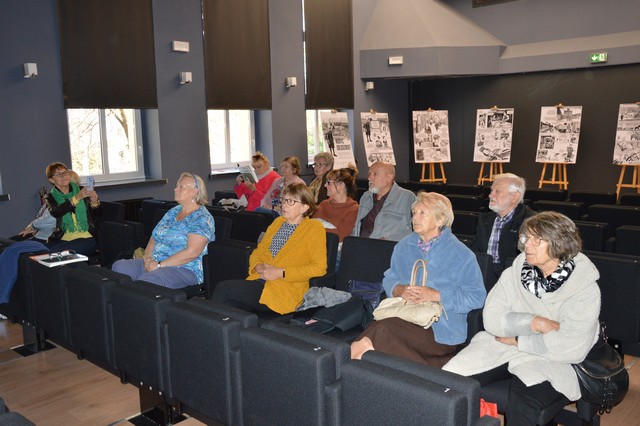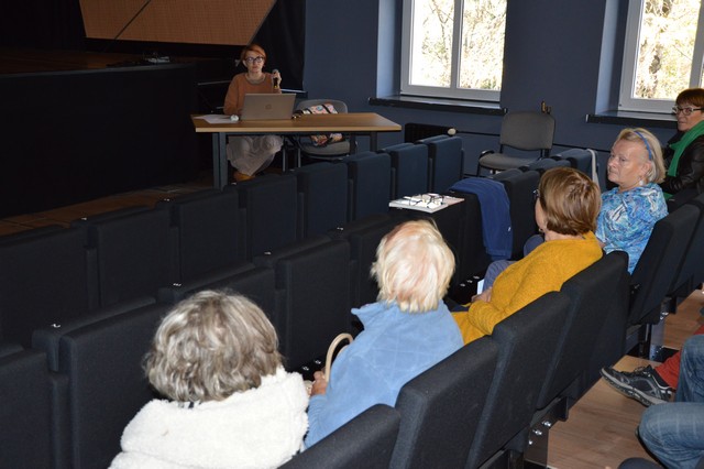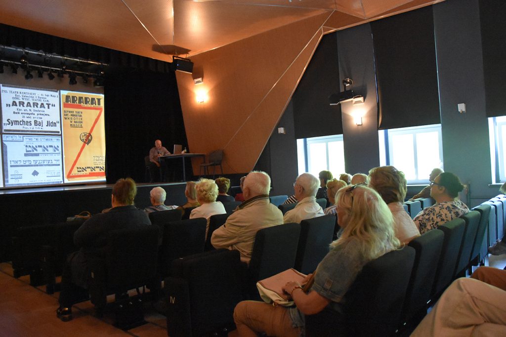 Na wykład dr Anną Nierychlewską przyszli nie tylko słuchacze Uniwersytetu Trzeciego Wieku, ale i inni zaciekawieni wielokulturowością miasta manifestującą się w architekturze i przestrzeni publicznej. Prowadząca przybliżyła publiczności losy społeczności żydowskiej i to jak jej obecność manifestowała się wizualnie w topografii miasta. W tej części wykładu nie zabrakło anegdot i barwnych opowieści, ale także dramatów ludzkich związanych z okupacją Niemiecką i zagładą tomaszowskich Żydów. Kolejnym tematem byli protestanci, a na koniec ludność prawosławna. Na finał wyświetlanej prezentacji zaprezentowane zostały etapy prac wykopaliskowych na Placu Tadeusza Kościuszki, w wyniku których zostały odkopane fundamenty Cerkwii pw. Św. Mikołaja Cudotwórcy.