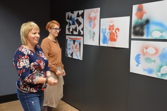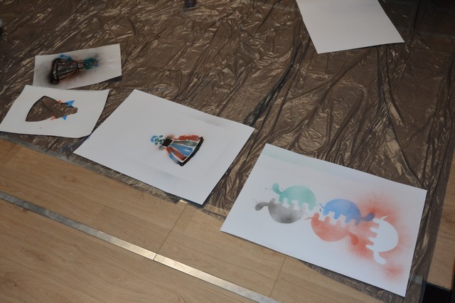 Finałem zajęć było odbicie własnoręcznie wykonanych szablonów oraz ich zaprezentowanie.